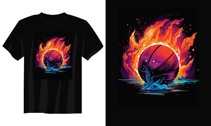 This classic t-shirt is the perfect canvas for a vibrant and eye-catching basketball graphic, sure to turn heads on the courts or the streets. The fiery design captures the energy and excitement of the game.